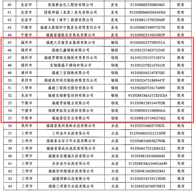 - 福建省2026年度全国碳市场重点排放单位名录:钢铁行业2025/11/4